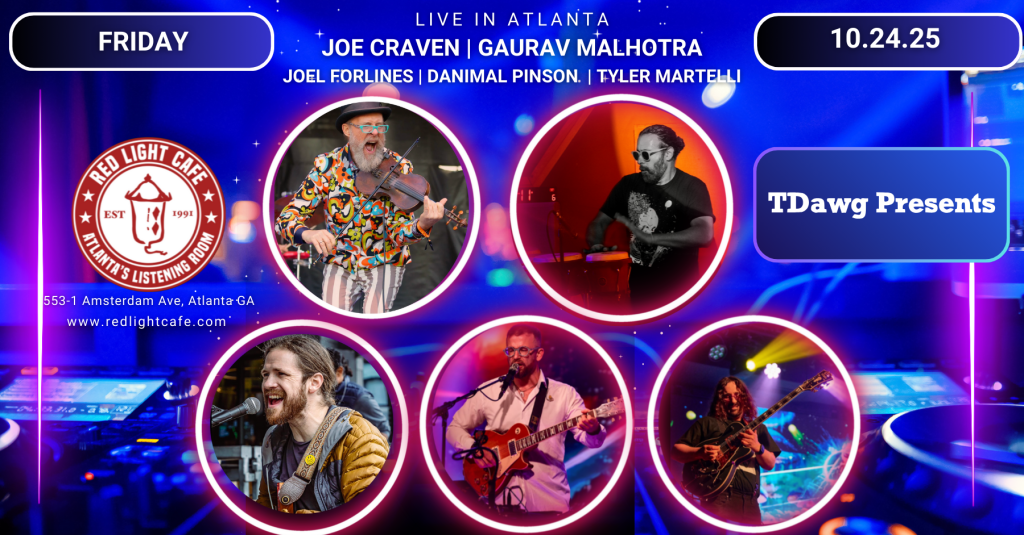 Join us for an unforgettable night of music as Joe Craven, master sound farmer, educator, and collaborator with legends like Jerry Garcia and David Grisman, shares the stage with Gaurav Malhotra, a world-class percussionist whose drumming bridges rhythmic traditions with global grooves. Together, these two dynamic artists bring decades of experience, innovation, and soulful rhythm to create a boundary-breaking performance that celebrates the spirit of folk, jazz, and world music. Joining them for this special show are Chattanooga’s Musical heavy weights Joel Forlines, Danimal Pinson and Tyler Martelli.