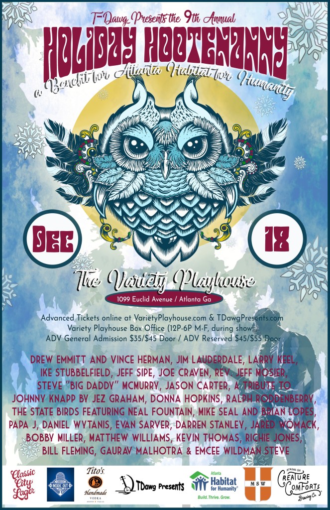 Have you purchased your ticket to the 9th Annual Holiday Hootenanny ~ A Benefit for Atlanta Habitatyet? It’s a great way to support any live show if you know you are going. This is going to be an amazing show with some fantastic musical highlights that will satisfy your needs until next year’s edition! Plenty of sit-ins throughout the evening, enough to quench your thirst for one-of-a-kind jams and times with friends and family.