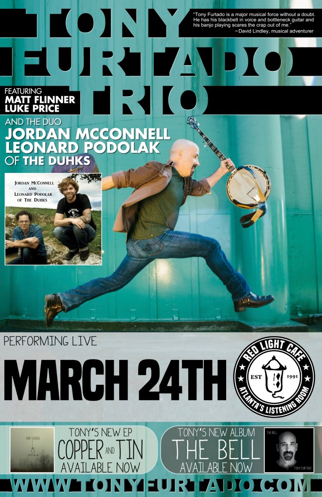 Tony is an evocative and soulful singer, a wide-ranging songwriter and a virtuoso multi-instrumentalist adept on banjo, cello-banjo, slide guitar and baritone ukulele who mixes and matches sounds and styles with the flair of a master chef (he’s also an accomplished sculptor, but that’s another story). All of the music of America is in Tony’s music. Relix hit the nail on the head when writing of Tony: “True talent doesn’t need categories.”Tony is joined by Grammy-nominated mandolinist Matt Flinner and 3-time national fiddle champion Luke Price. “Flinner provides the next logical evolutionary step to David Grisman’s unique ‘Dawg’ style, and does it with a nod to the past and a vision of the future.”—Bluegrass Now
